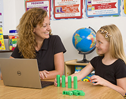 Once we have determined a working level, Kathy also developed an array of instructional activities that build conceptual understanding of these key math concepts. These activities are found in the Developing Number Concepts series; counting is in Book 1. If I want to focus on one-to-one correspondence, I might choose to do the Creations activity. In this small-group activity, students will build connecting-cube creations that match the pictures on a card. Students must build their creation so it matches exactly, helping them learn this critical concept.