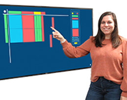 Using an interactive whiteboard, students can share their strategies during a whole-class discussion. This helps students make the leap from the concrete model to a clear visual representation of the problem. As students manipulate the tools on the interactive whiteboard, they reinforce what they did with their own hands-on manipulatives while solving the problem. For example, students could use the Unifix cubes tool to model exactly what they did with their own cubes while solving an addition, place value, or comparison problem.