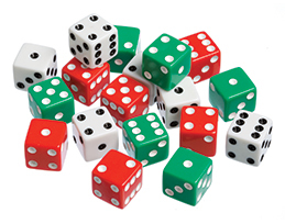- Bring out the spinners, dice, coins, two-color counters, and colored marbles and paper bags.