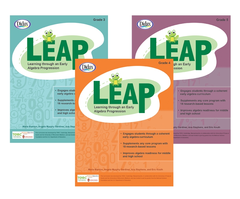 LEAP is a supplemental program entirely focused on building early algebraic thinking, yet it does so by connecting with and deepening children’s understanding of arithmetic. It uses a series of tasks and activities to help children build their understanding of key algebraic concepts and practices over time. It is a first-of-its-kind resource that delivers authentic early algebra experiences for all learners: the lessons are coherent, the concepts are connected, the content is accessible, and the outcomes are transformative, increasing children’s readiness for learning formal algebraic concepts in later grades.